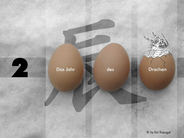 Der Drache schlüpft aus dem Ei. 2000 war das Jahr des Drachen. Es gab zwei Versionen: